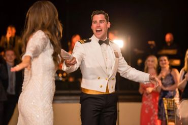 Katrina and Patrick danced to 6 different songs in their mashup. They took 10 one hour lessons with Liza and Mark and started 10 months before their wedding, because Patrick was going to be deployed for part of that time. Here is what they said: "Thank you for everything you two did to help us with this dance! It was a big hit with all our guests."