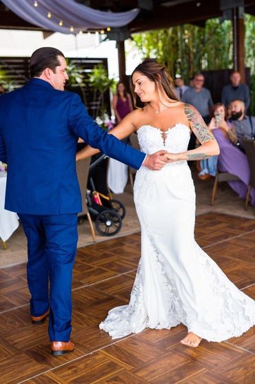 These lovebirds danced to Radio Signal by Emily Stockdale. They took 7 one hour lessons and started 2.5 months before their wedding. Here is what they said: "Everything went so well with the dance--a few dress hiccups in the beginning but then we were off to the races! You and Mark were so wonderful and we are so grateful we got to work with you to create this special moment."